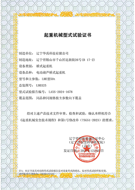 LDP电动单梁型式试验合格证